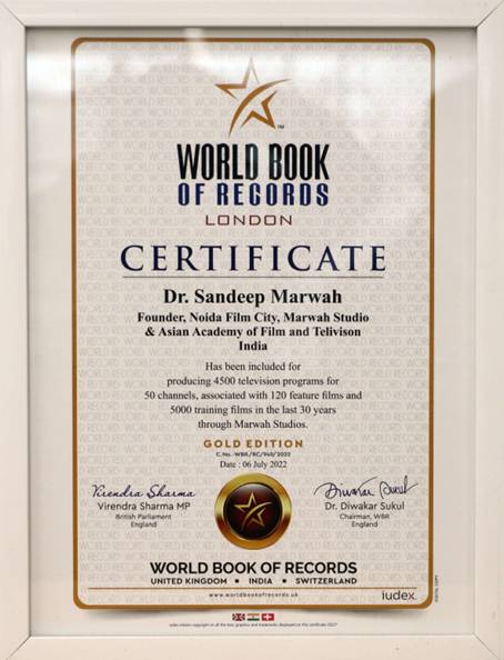 13th Governor of Arunachal Pradesh & 21st Chief of Army StaffResearch based programs never fail, Noida Film City is an example for that. Dr. Marwah has deep understanding for research especially for creative arts.